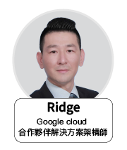 - 14:10 ~ 14:40|邀約中|Google cloud 合作夥伴解決方案架構師 Ridge XU