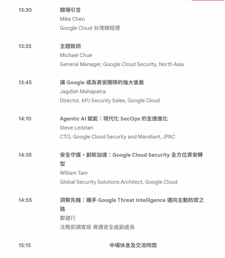 當 AI 正在加速企業創新,資安威脅也同步進化,甚至更難預測。年度資安盛會 Google Cloud Security & Resilience Forum 2026 將深入解析如何透過 AI、威脅情資與專家經驗,讓資安從「被動回應」走向「主動防禦」。本次論壇重點包含:Mandiant 第一線攻防實戰經驗、全球威脅情報如何即時轉化為防禦策略、 Agentic AI 在 SecOps 的實際應用、打造跨雲與原生安全的現代化架構。