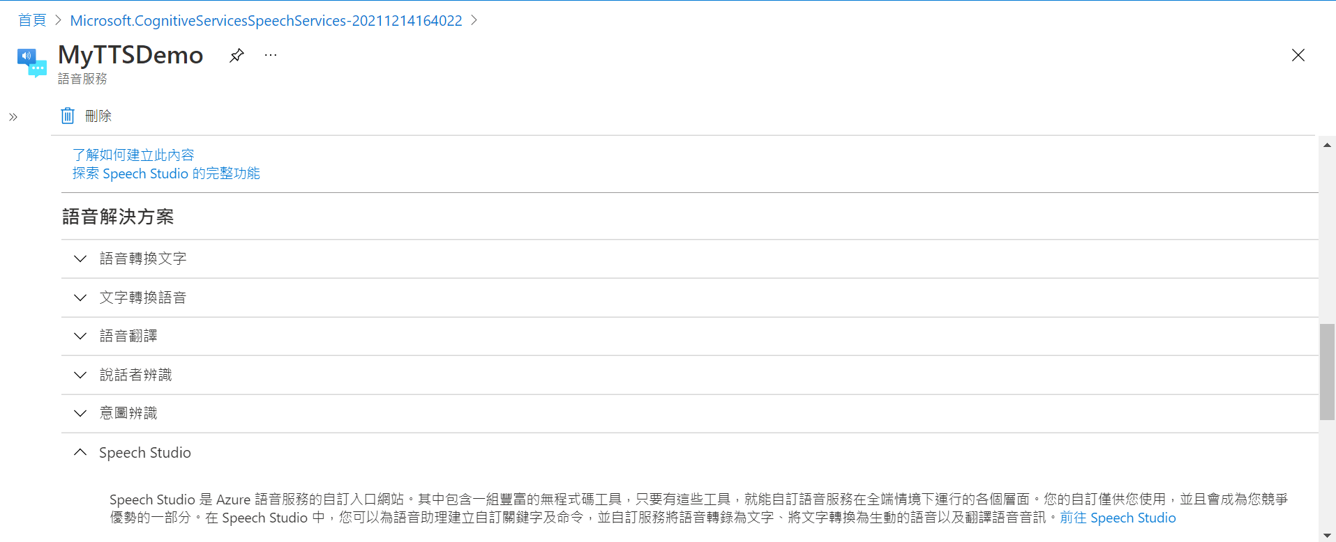 d.往下滑點選 Speech Studio,並前往 Speech Studio